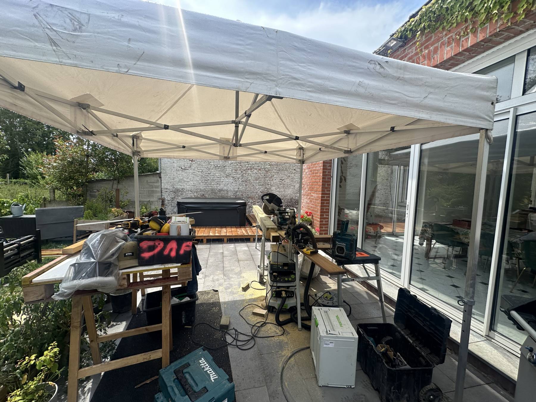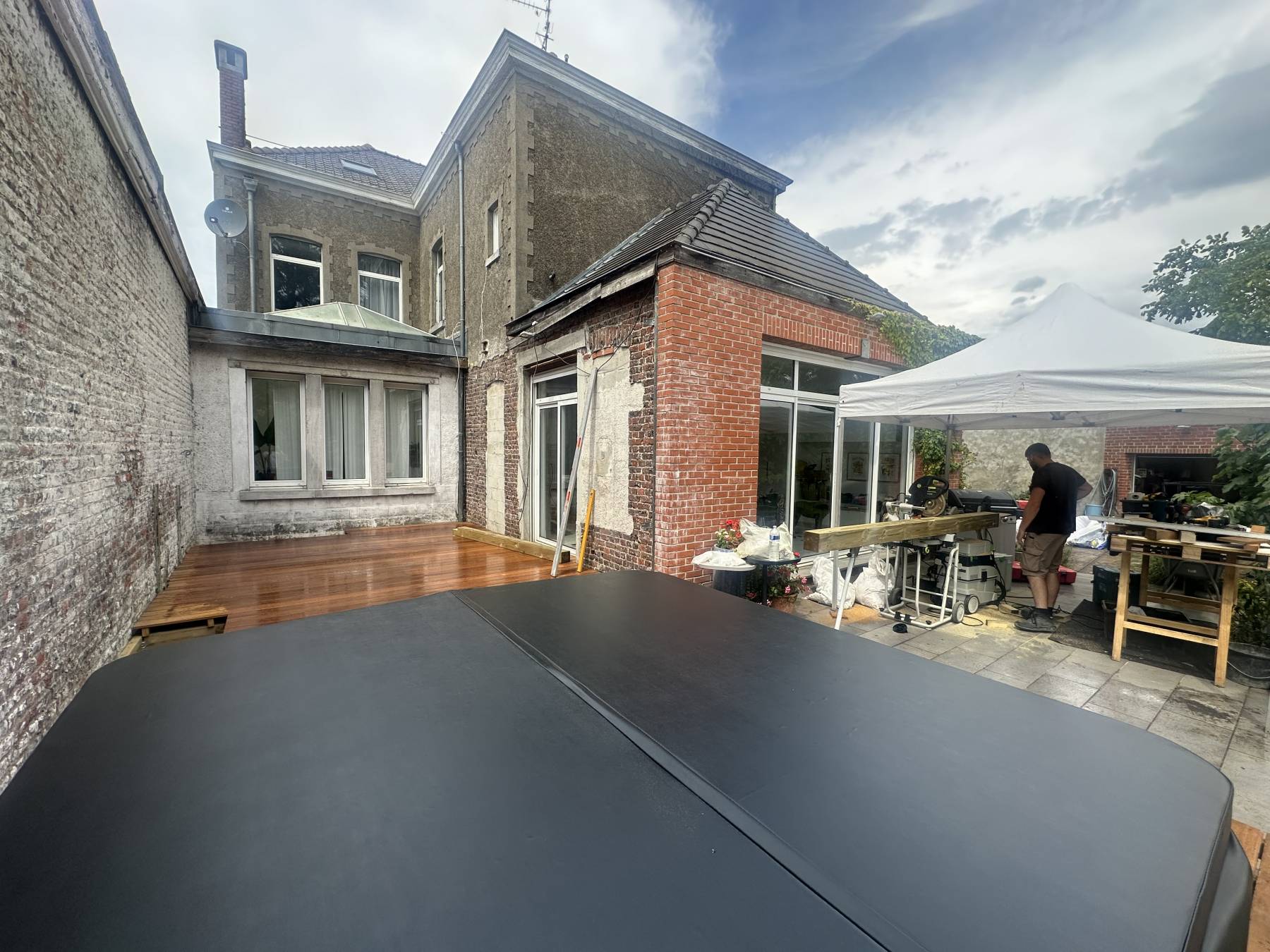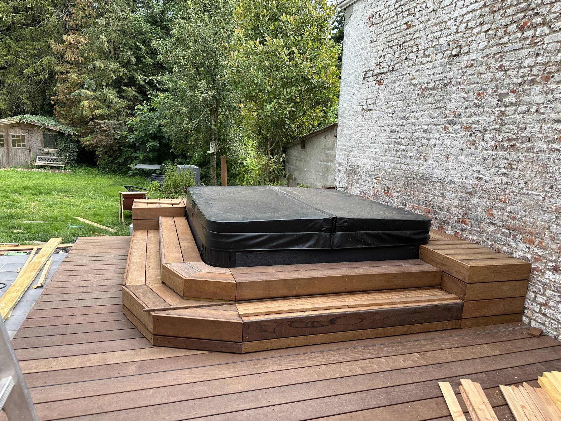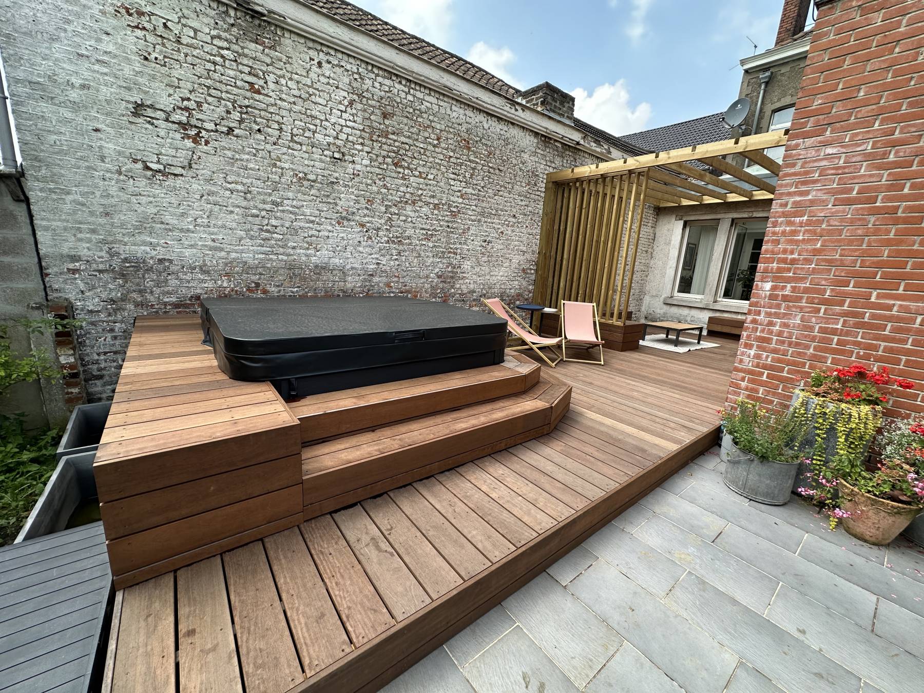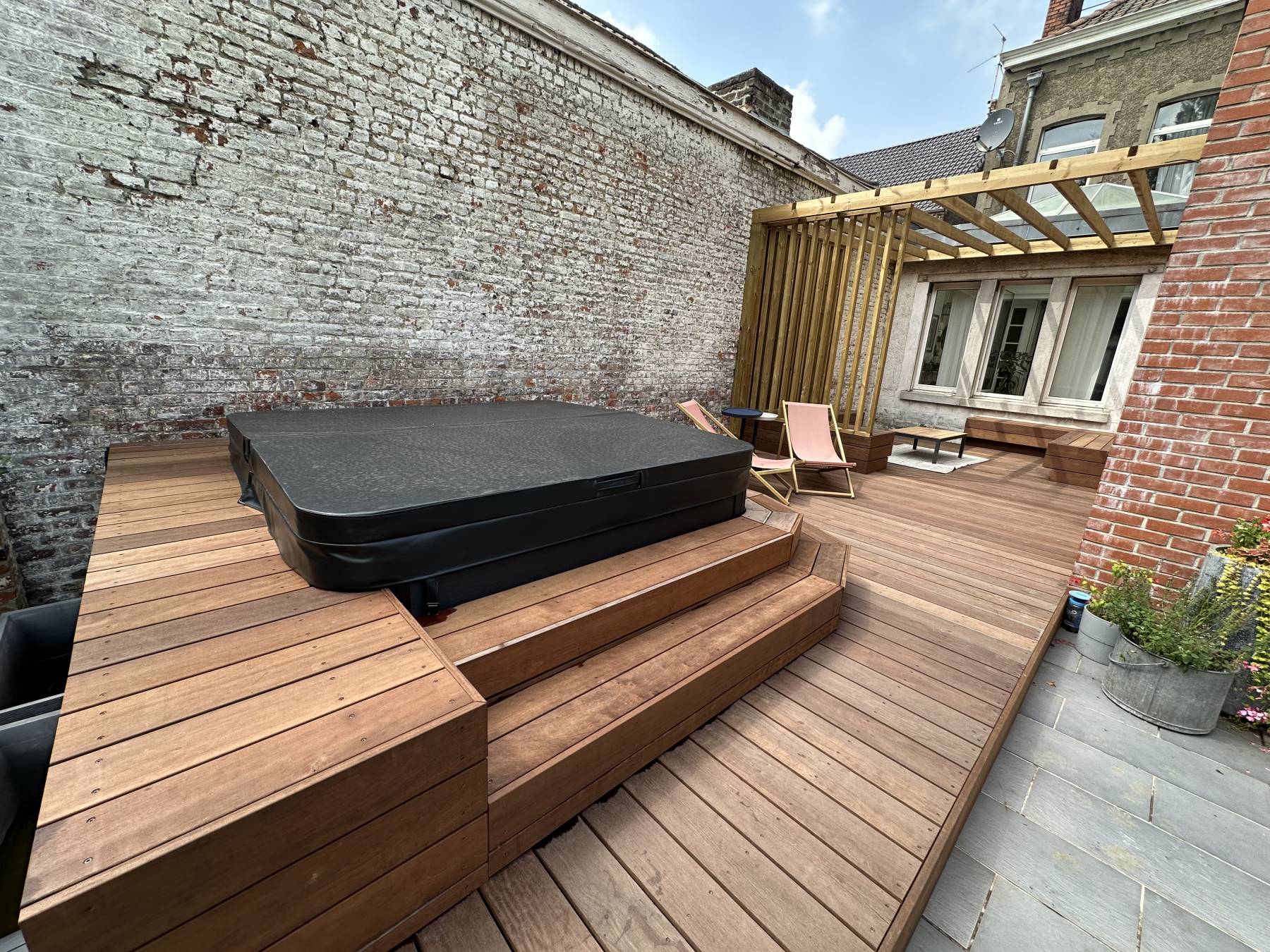 Terrasse bois exotique / spa / mobilier extérieur / pergola