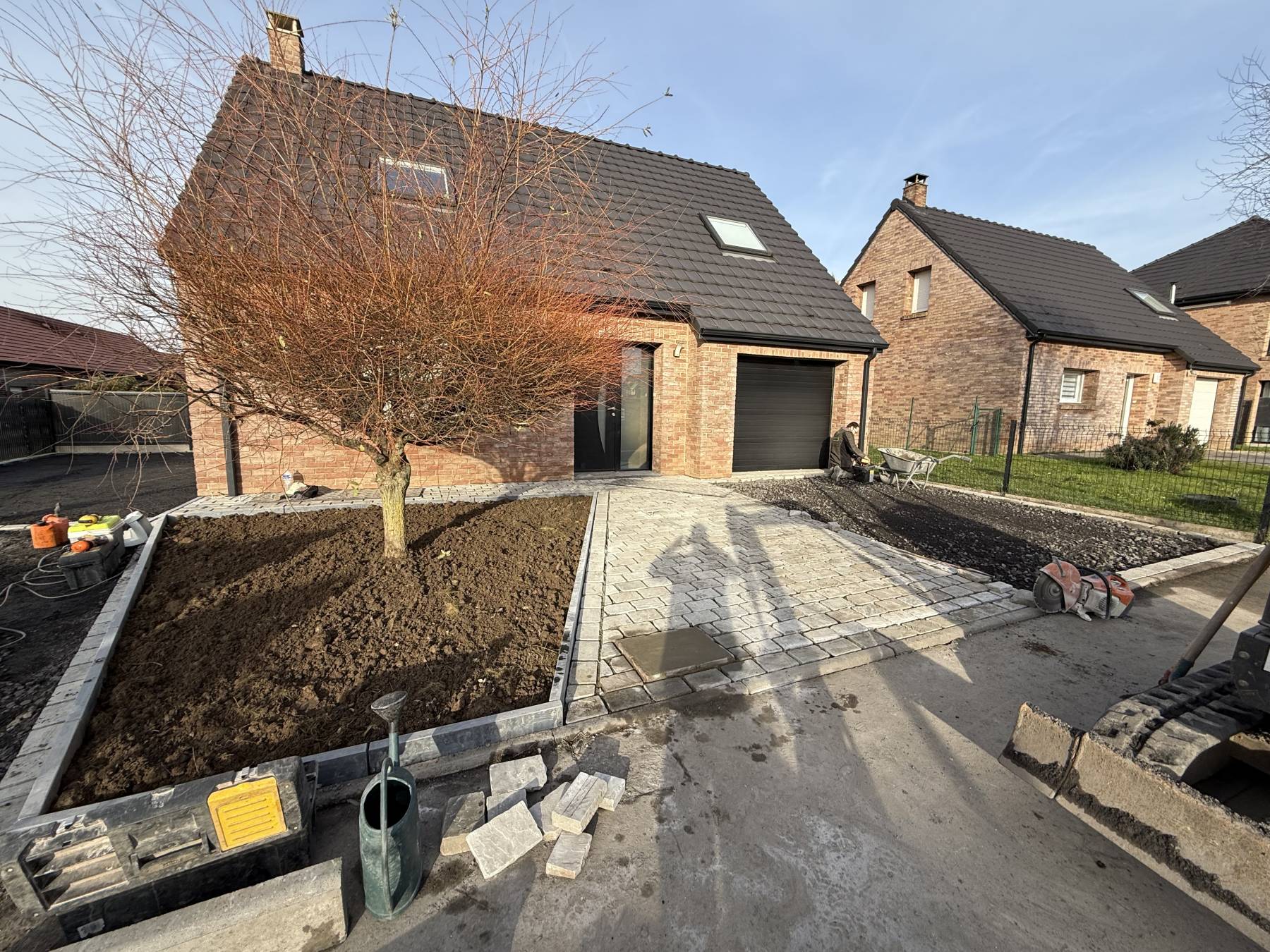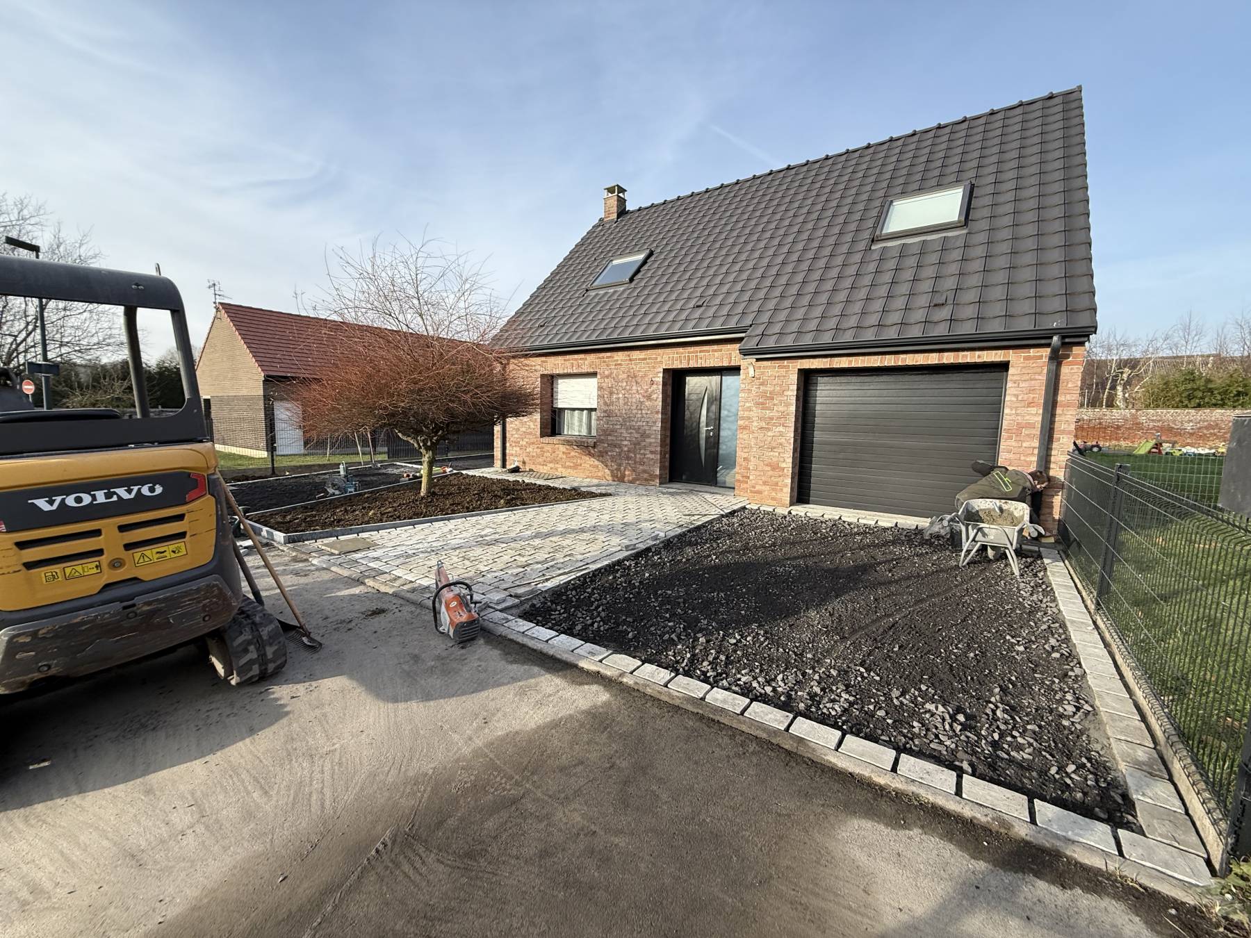 Terrassement / paysagiste / allée en enrobé / pavage